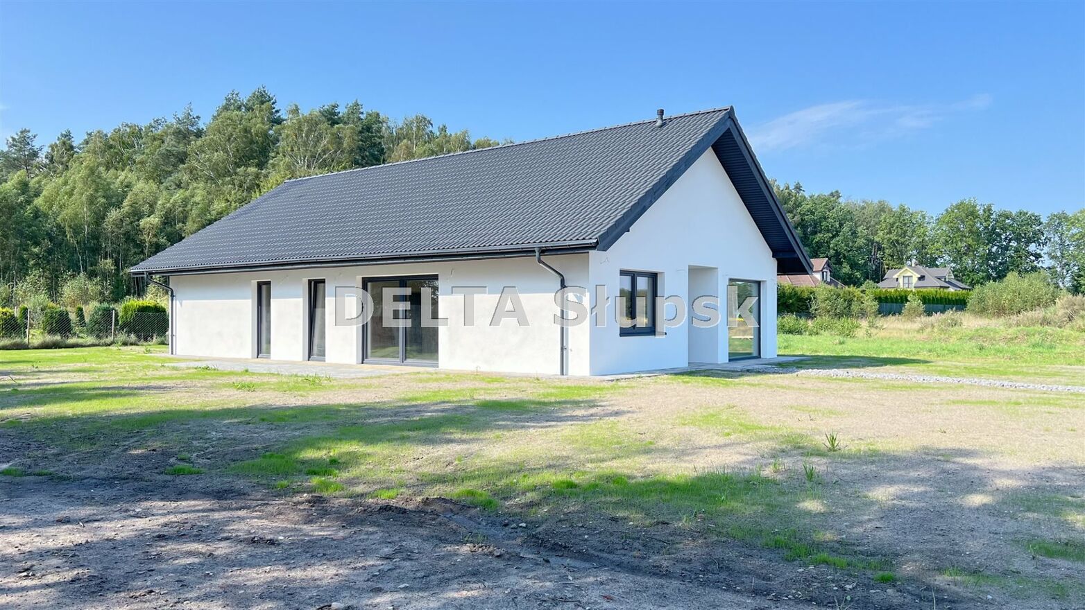 Dom parterowy, przykryty dwuspadowym dachem, wolnostojący, zbudowany na planie prostokąta, posadowiony na działce o powierzchni 964 m2 w miejscowości Bydlino.